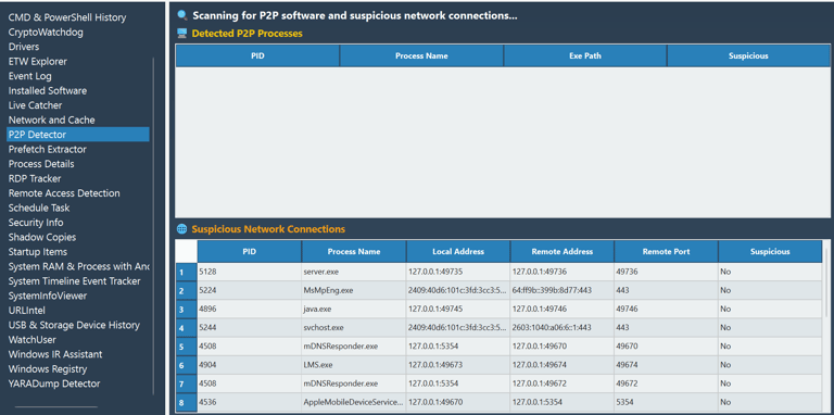Our P2P Detector module empowers cybersecurity teams with the ability to identify unauthorized peer-to-peer software, analyze suspicious network activity, and flag stealthy exfiltration channels before they become incidents.
